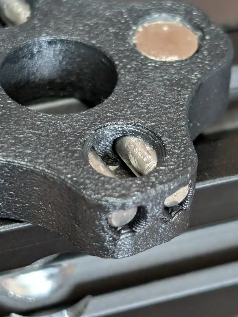 "SUJ2" 4mm bearing ball * 4 Some other materials like SUS304 are not magnetic. And this bearing ball needs to be magnetic. that's the whole point of inserting magnets. it prevents the ball from escaping. I've chosen SUJ2 because it is readily available as bearing balls and is magnetic!