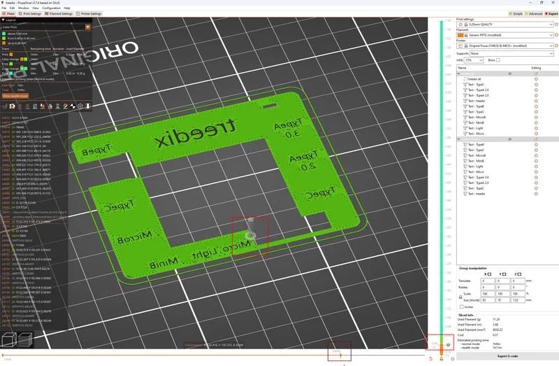To actually have a text, or ‘ink’ colour we need to actually manually edit the .gcode and insert the M600 filament changes manually. It's not as bad as it sounds, but it does need some explanation.