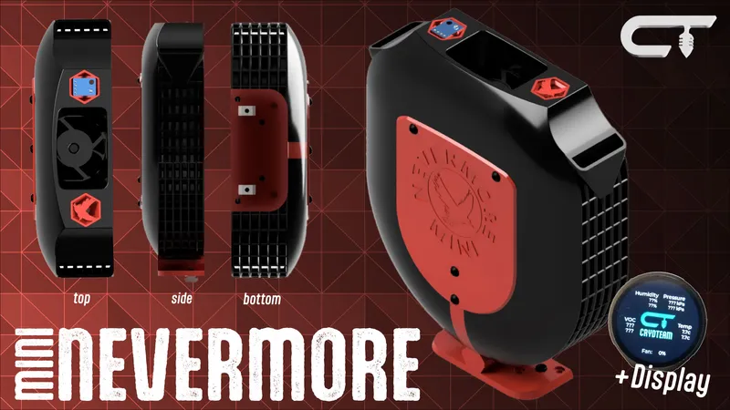 Welcome to the next generation of 3D printer air filtration presented by Nevermore 3D, pioneers in open-source community 3D printer filtration since 2019. We’re proud to announce our latest design, the Nevermore Mini, designed to redefine efficiency and airflow in the realm of compact 3D printer filtering, and that will hopefully fit any machine!