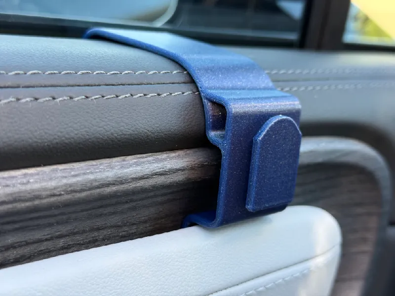 The window clips lets you hang a cup holder from the window sill. There's actually a small gap with weather stripping it fits into, separate from where the window is. When it's installed it sits a few millimeters away from the window and does not affect its use. The wood trim on the doors actually protrudes slightly beyond everything else, so I designed the clip to rest on the leather portion to not scratch the wood.