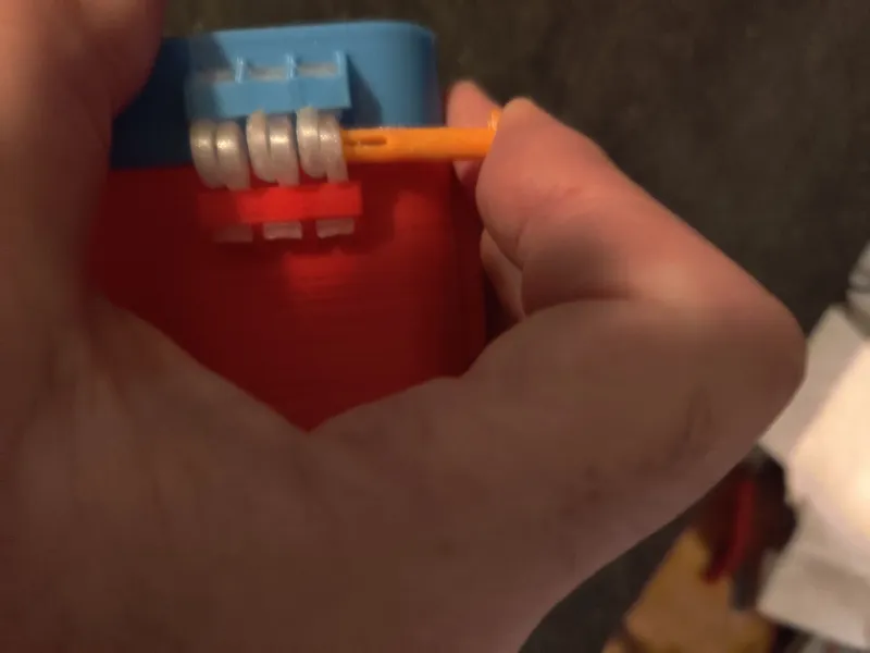 This cartridge box is printed as separate parts that are printed in orientations chosen to maximize strength and then snapped together.