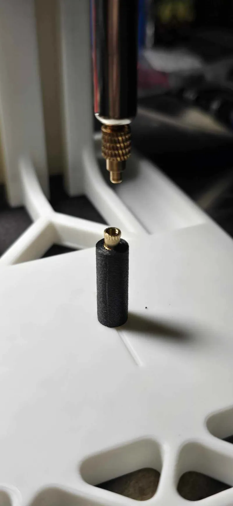 You'll need to put the inserts into the camera mount and standoffs. I didn't have a press and didn't trust I could put the inserts in straight. So, I made this printed insert press. It's probably not the best, but it gets the job done. ![]()