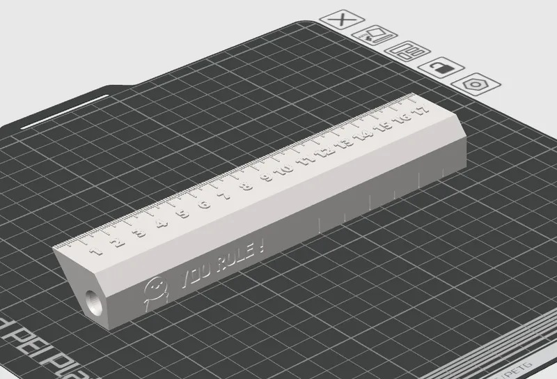 NO AMS needed for printing the ruler MM details. Just a color swap. I choose 0.12mm layer height (0.2mm first layer) and change the color at layer 175. Also, I would slow down the print speed for the details, to have a better result.